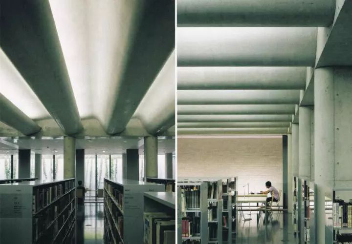 学校内图书馆地下为书库和阅览室,采用预制装配式混凝土梁板,梁高800mm,实现了阅览室的大空间。