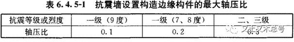 2 底层墙肢底截面的轴压比大于表6.4.5—1规定的一、二、三级抗震墙,以及部分框支抗震墙结构的抗震墙,应在底部加强部位及相邻的上一层设置约束边缘构件,在以上的其他部位可设置构造边缘构件。约束边缘构件沿墙肢的长度、配箍特征值、箍筋和纵向钢筋宜符合表6.4.5—3的要求。