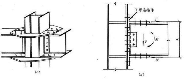 梁柱的半刚性连接可以采用在梁端焊上端板,用高强螺栓连接,或是用连于翼缘的上、下角钢和高强螺栓。其设计要求如下: